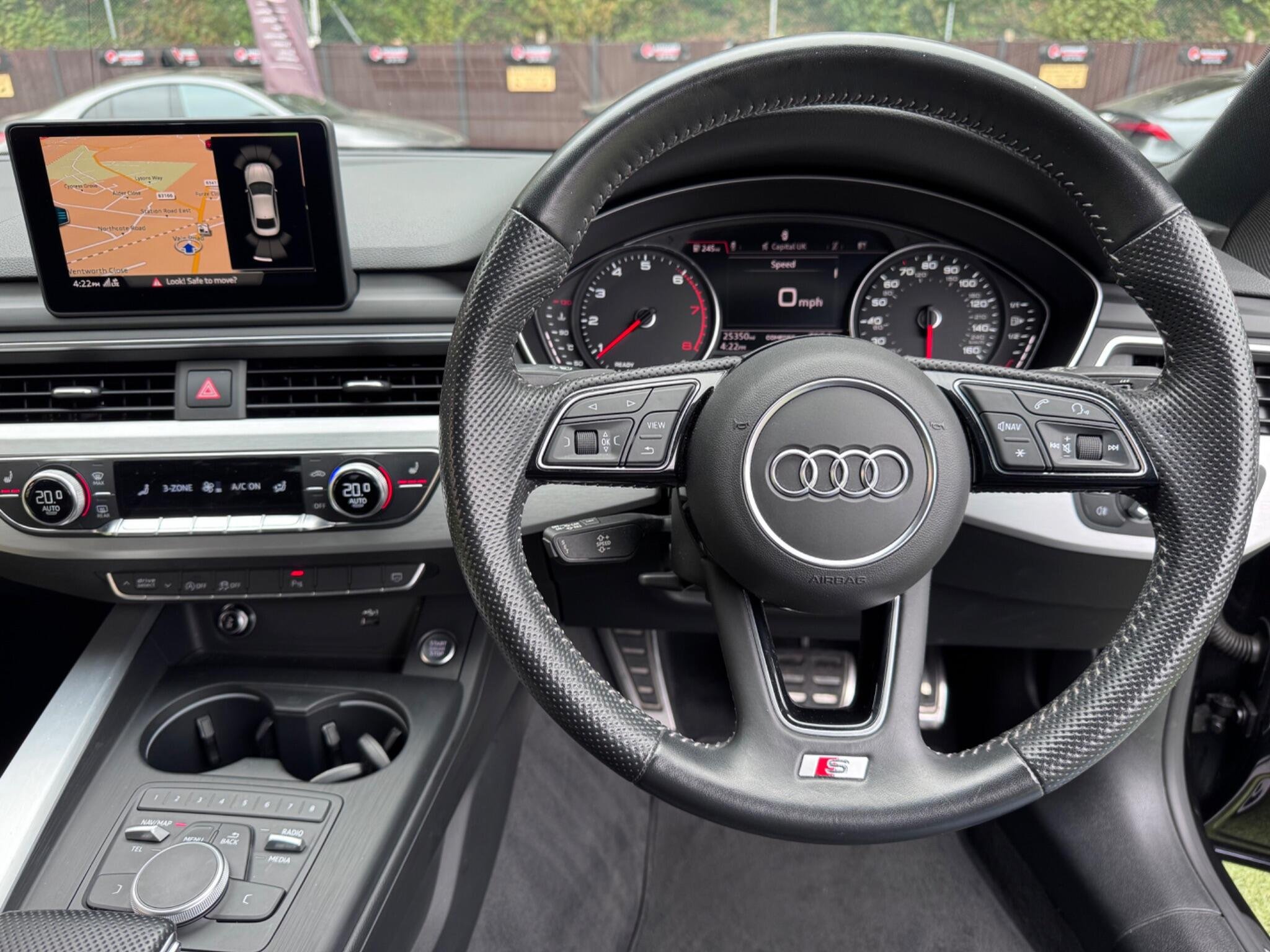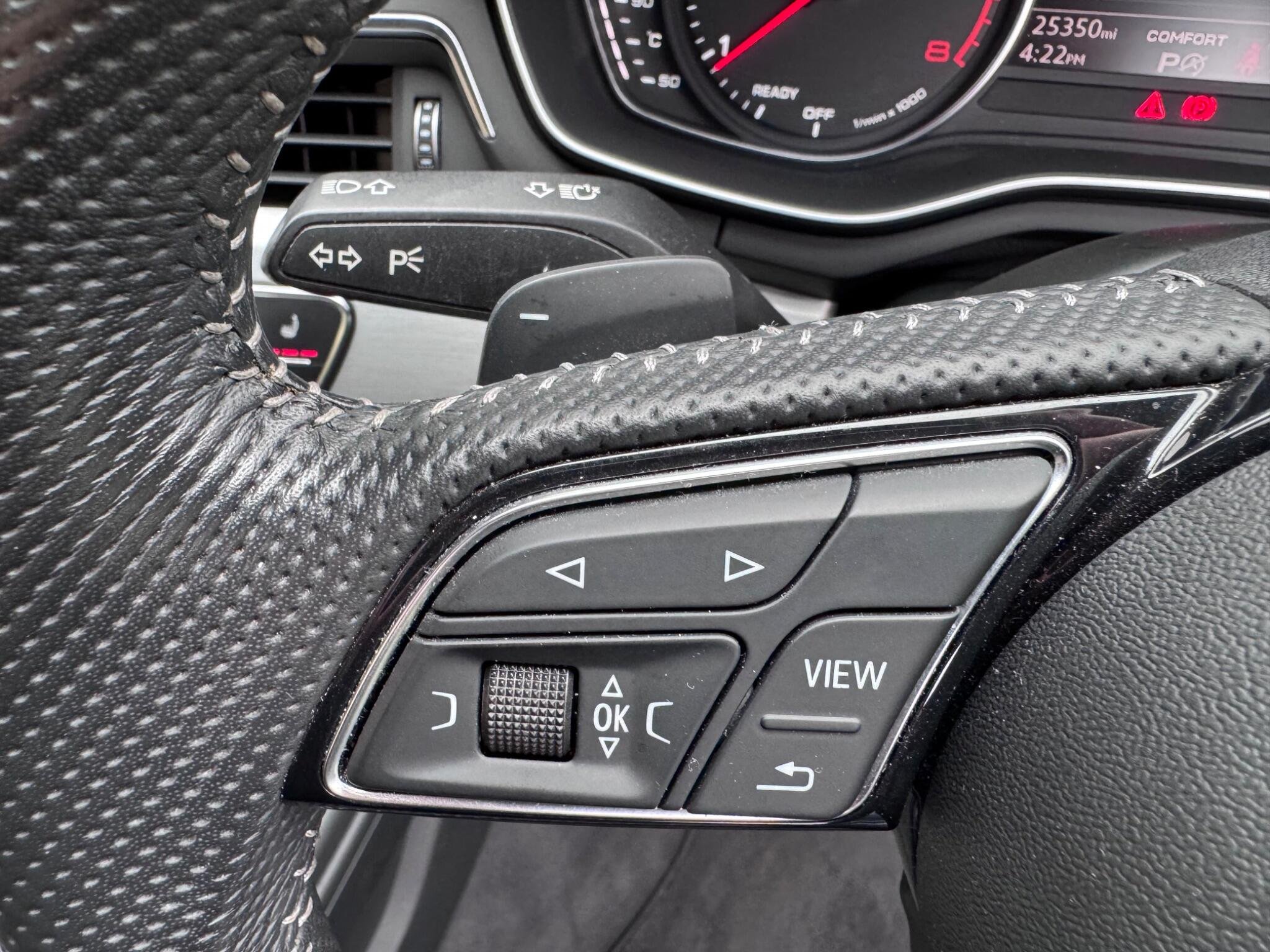 - High Multi-Function 3-Spoke Leather Steering Wheel with Grips in Perforated Leather and S Badging