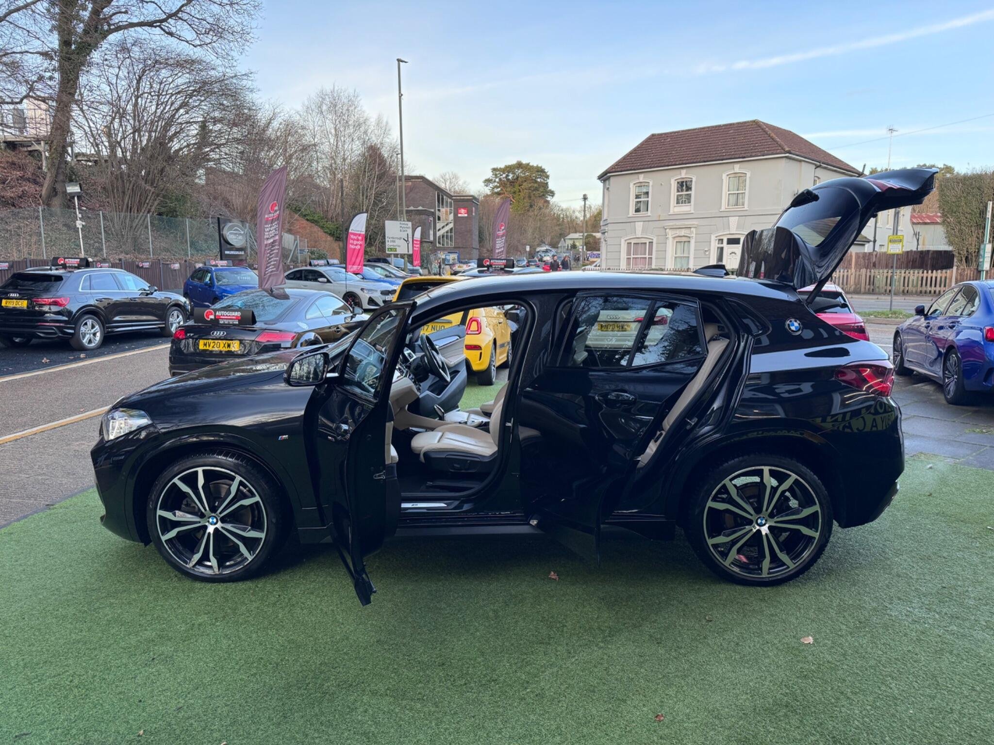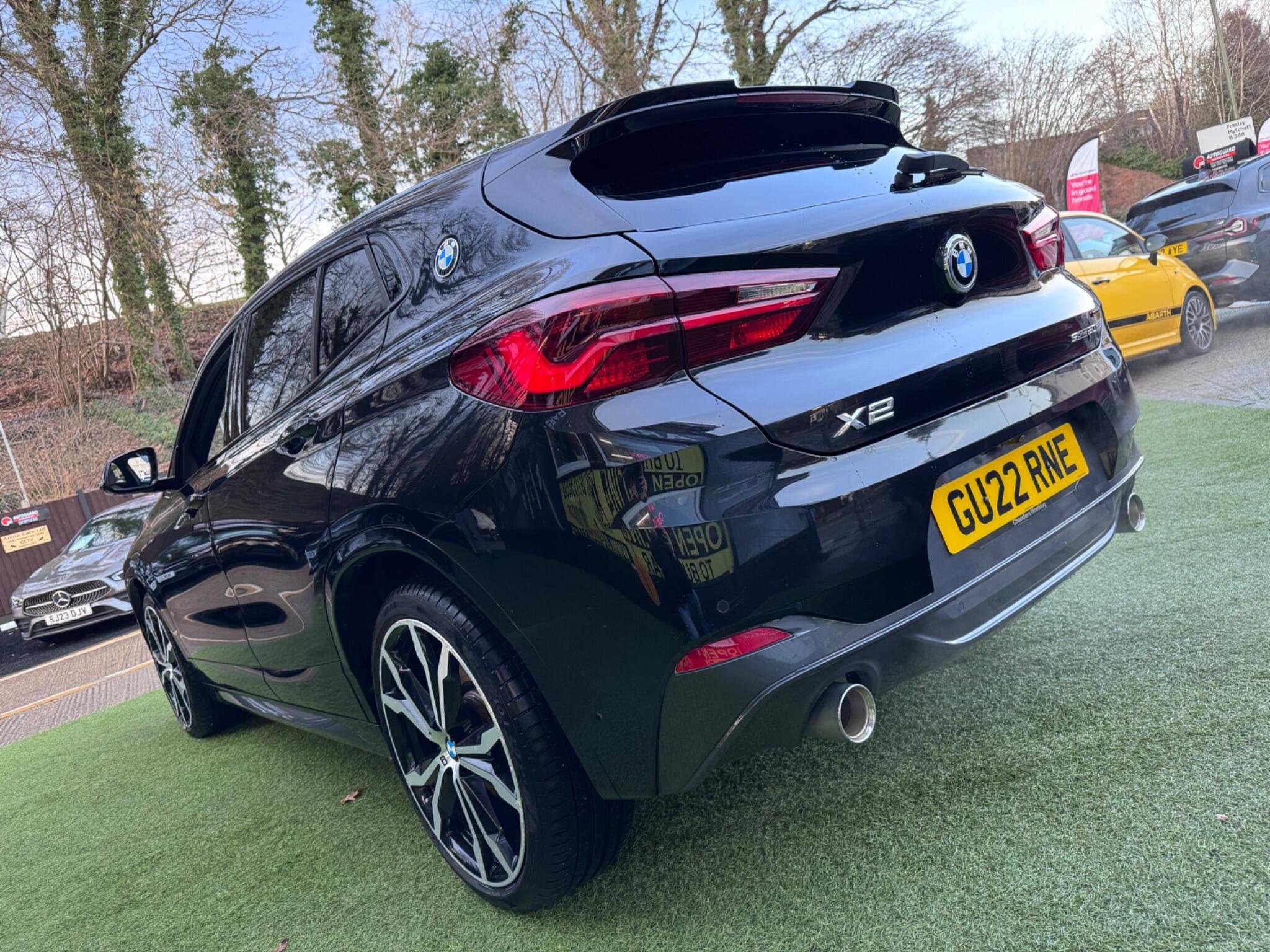 This 2022 BMW X2 20i M Sport presents a remarkable opportunity with its exceptionally low mileage of just 21,732 miles. This Euro 6 compliant model boasts a powerful 2.0 litre petrol engine, delivering an impressive 0-62mph acceleration in only 7.6 seconds. The M Sport trim enhances its dynamic appeal, complemented by striking 20 inch M Light Double Spoke 716M alloy wheels fitted with run flat tyres.